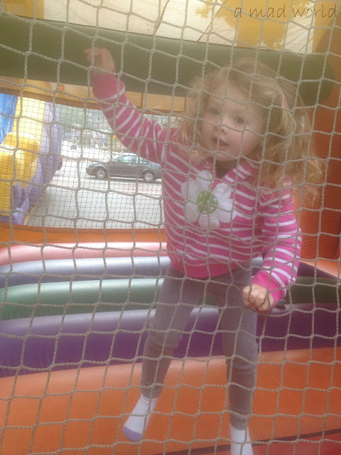 There was a large inflatable slide and jumping castle, and - trying to be 'fun mum' while I do solo weekends with them - I bought a bunch of tickets and let the girls go for it.